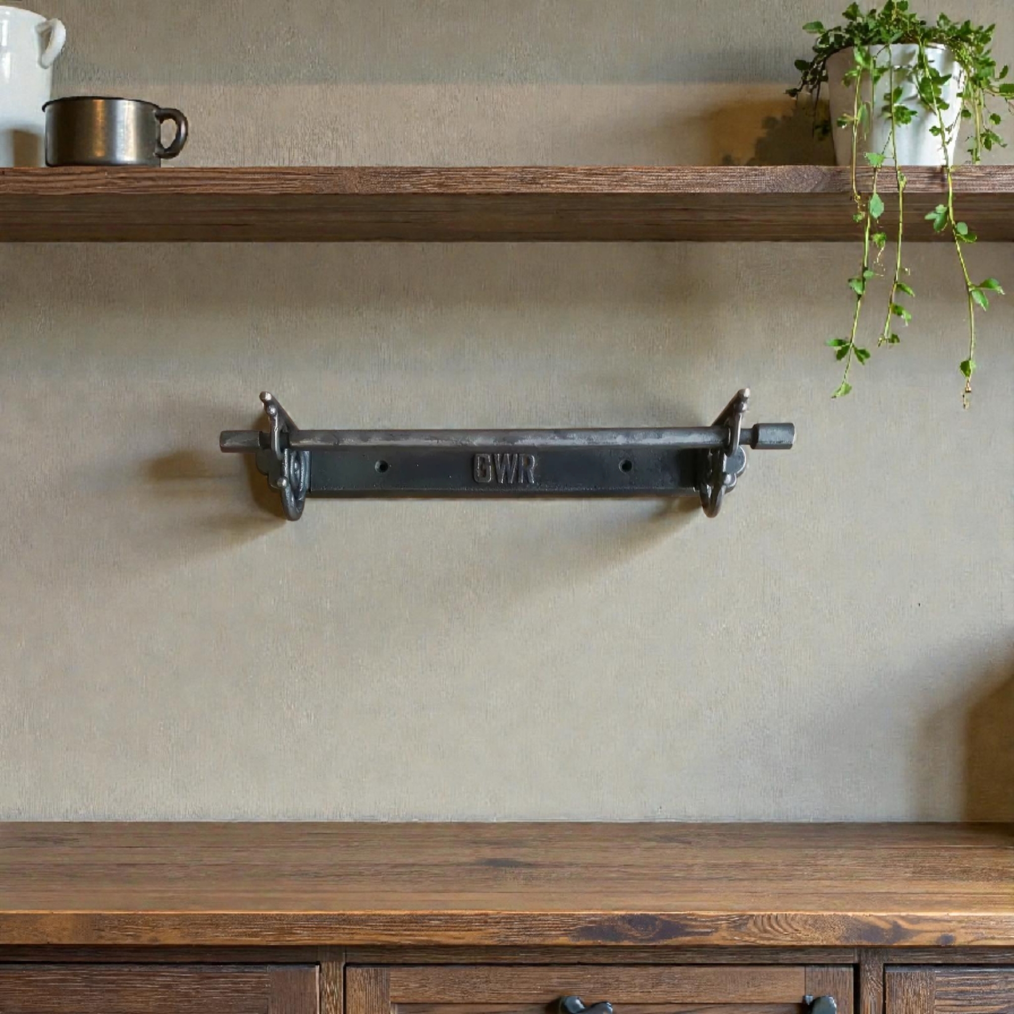 Bring a dash of heritage charm to your kitchen with this beautifully crafted vintage-style kitchen roll holder. Featuring a solid cast iron backplate embossed with an authentic Great Western Railway design, it evokes the golden age of British rail travel — a nod to classic engineering and timeless design.