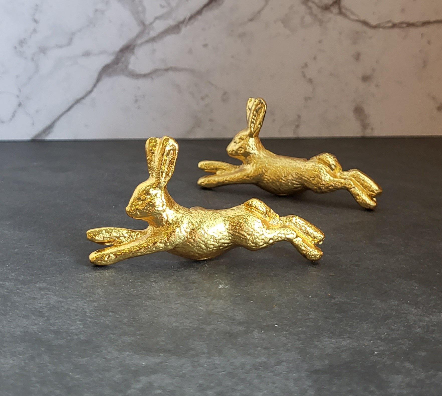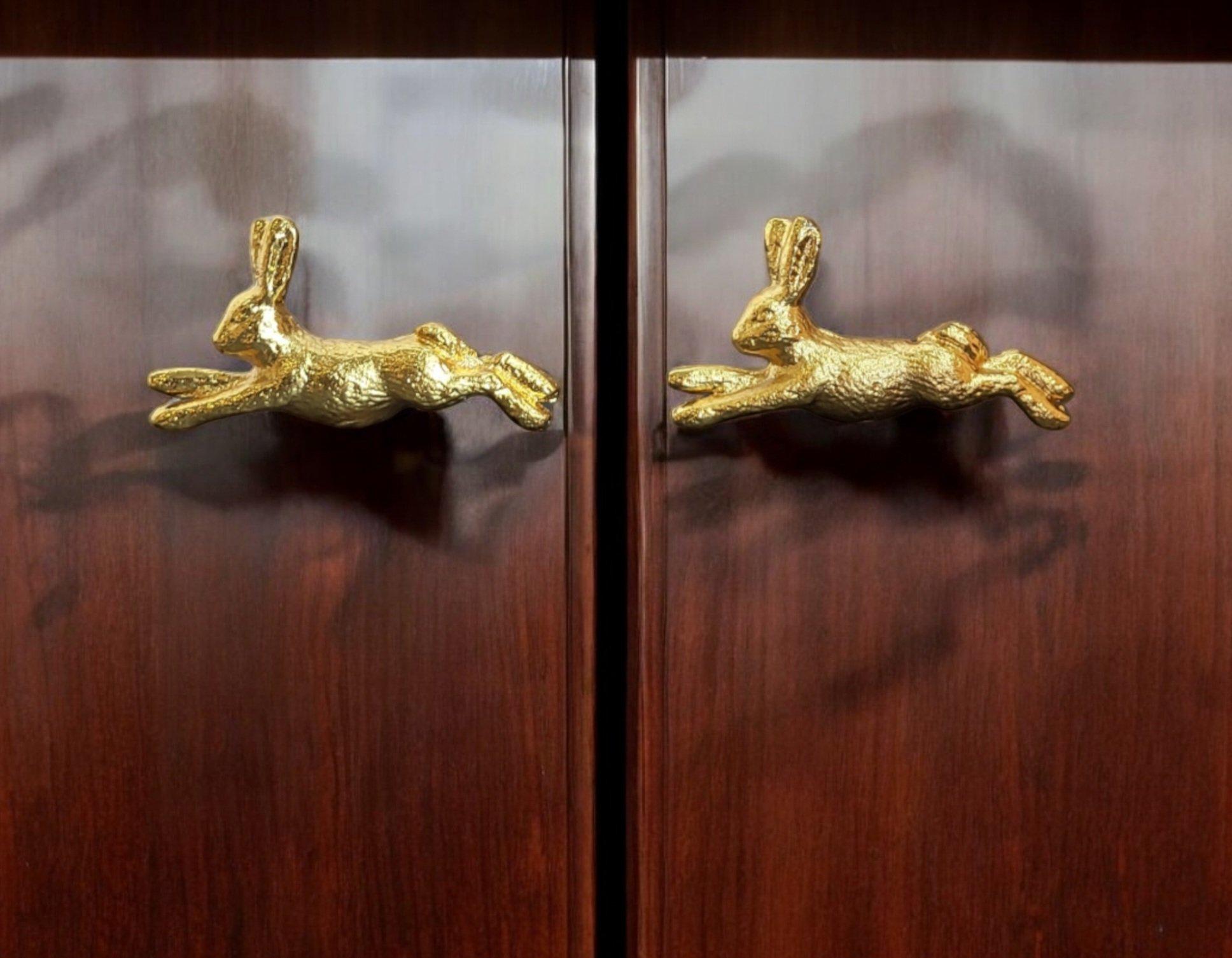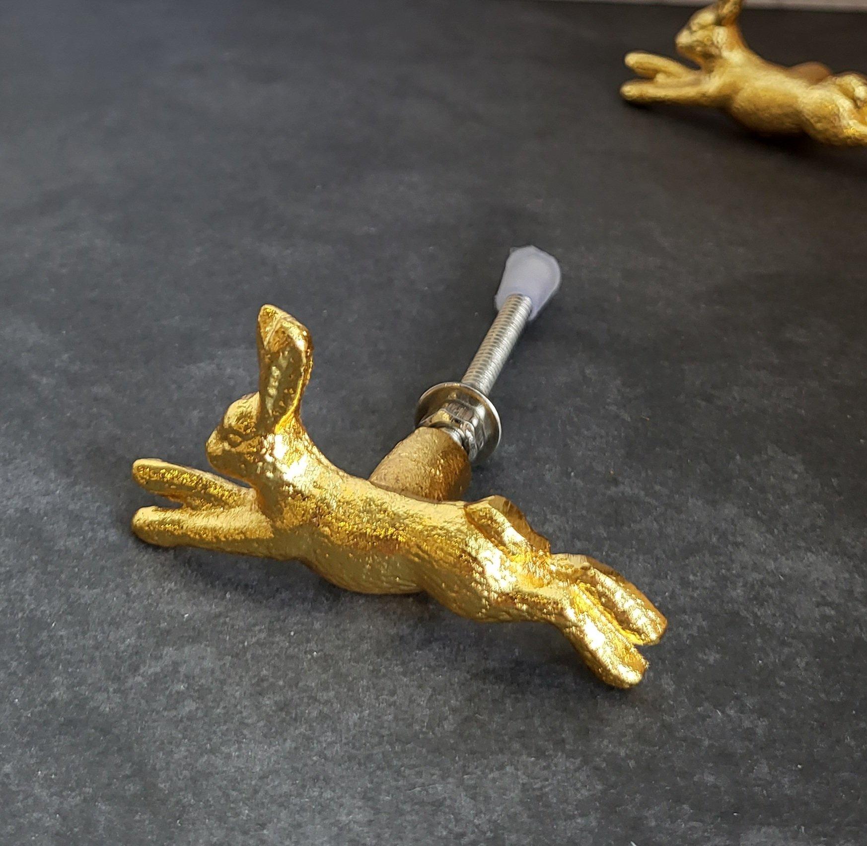 Bring movement and charm to your furniture with The Gold Running Hare Handle. Inspired by the swift and graceful motion of a hare in mid-sprint, this handcrafted piece adds a playful yet elegant touch to cabinets, drawers, and cupboards. Whether enhancing a rustic farmhouse aesthetic or adding a unique accent to modern decor, this beautifully detailed rabbit handle is a stunning addition to any space.